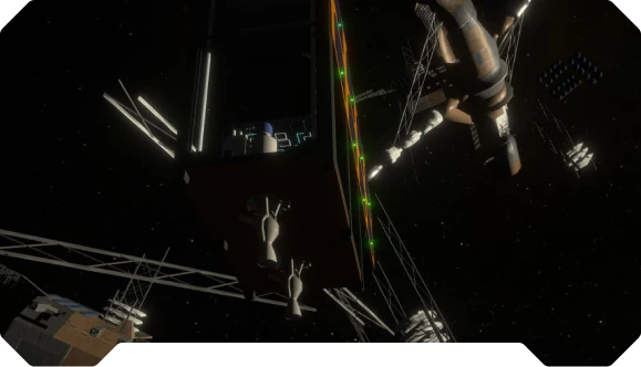 Use robotic arms, fire thrusters, mate with docking ports, spin reaction wheels, deploy aerials, move solar panels, take camera shorts … operate any and all of your spacecraft parts to complete your mission, but watch out, they don’t all work as expected.Â